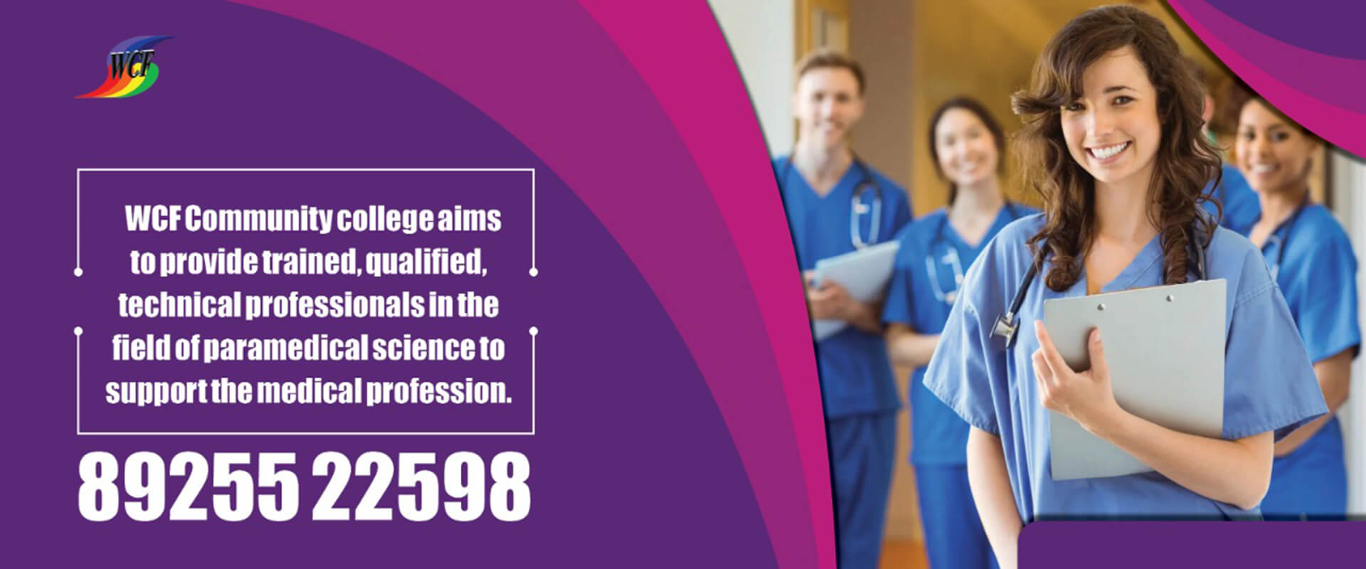 The institute aims to provide trained , qualified , technical professionals in the field of paramedical science to support the medical profession. WCF community college started in 2014, which is afflicted with the Bharat Sevak Samaj, national Development Agency , promoted by Government of India
